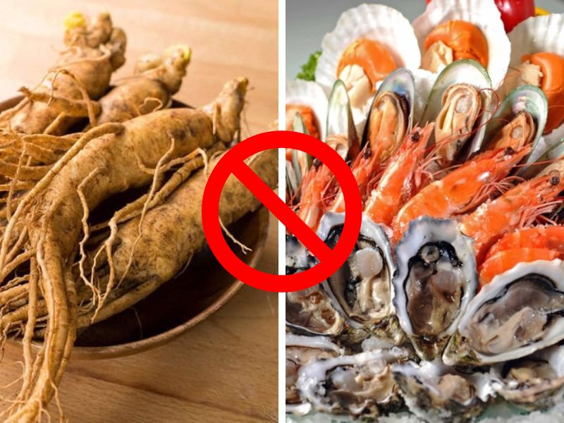Không dùng chung sâm với các loại hải sản bởi hải sản là đại hạ khí, còn nhân sâm là đại bổ khí, rất kỵ nhau.